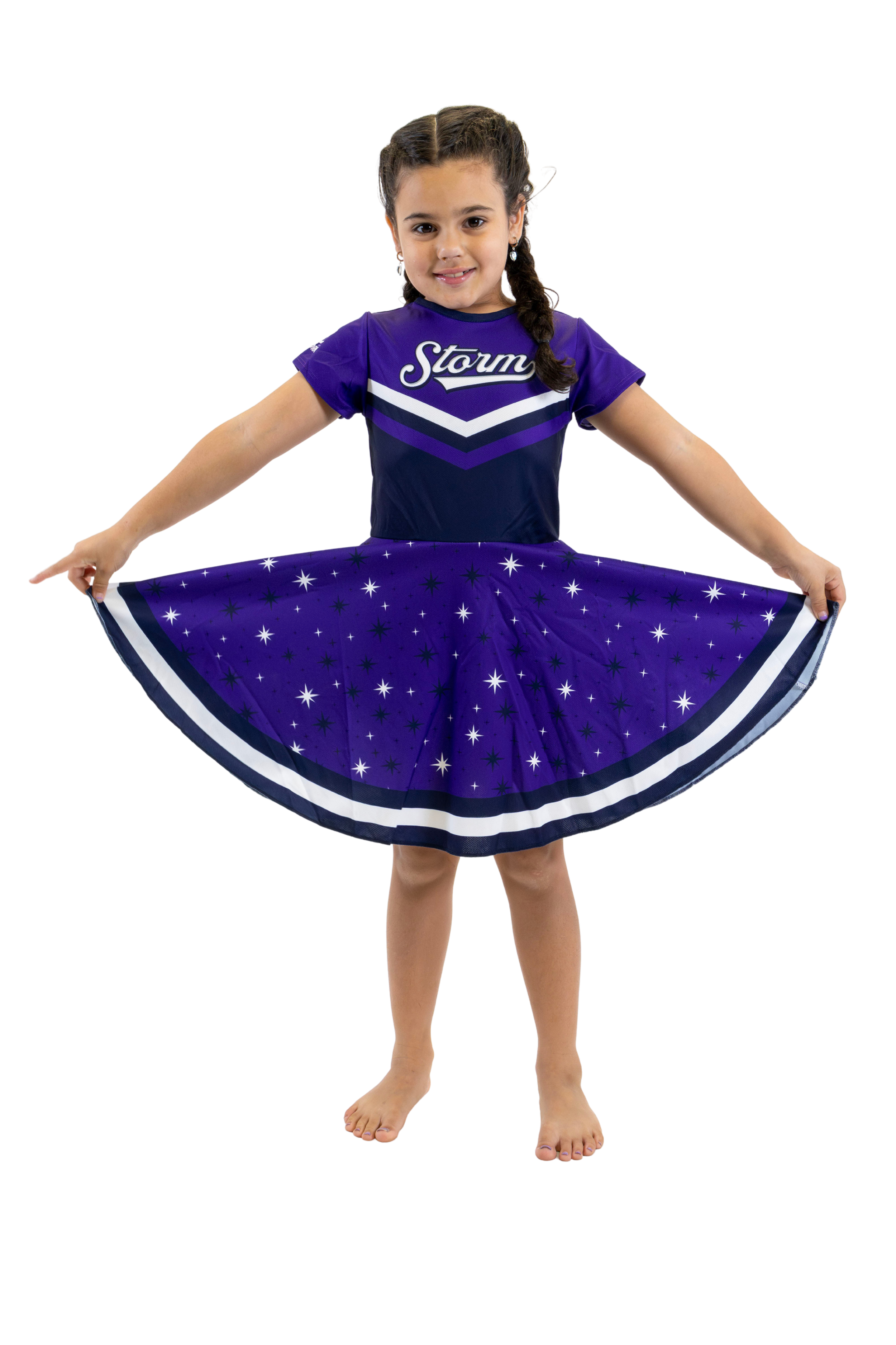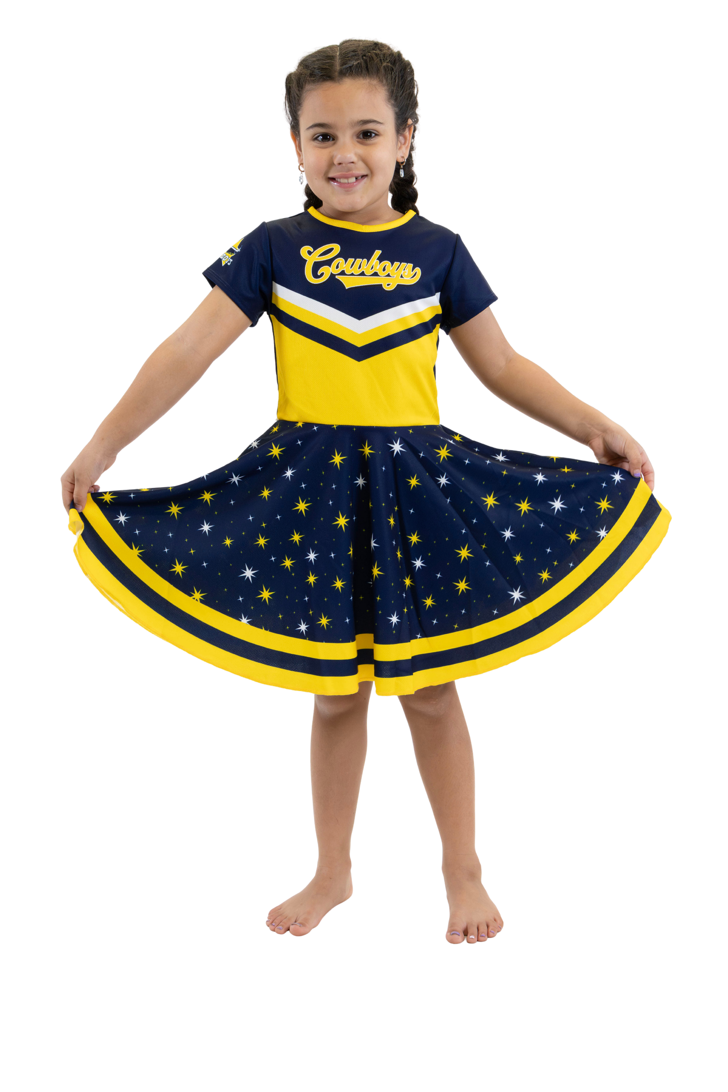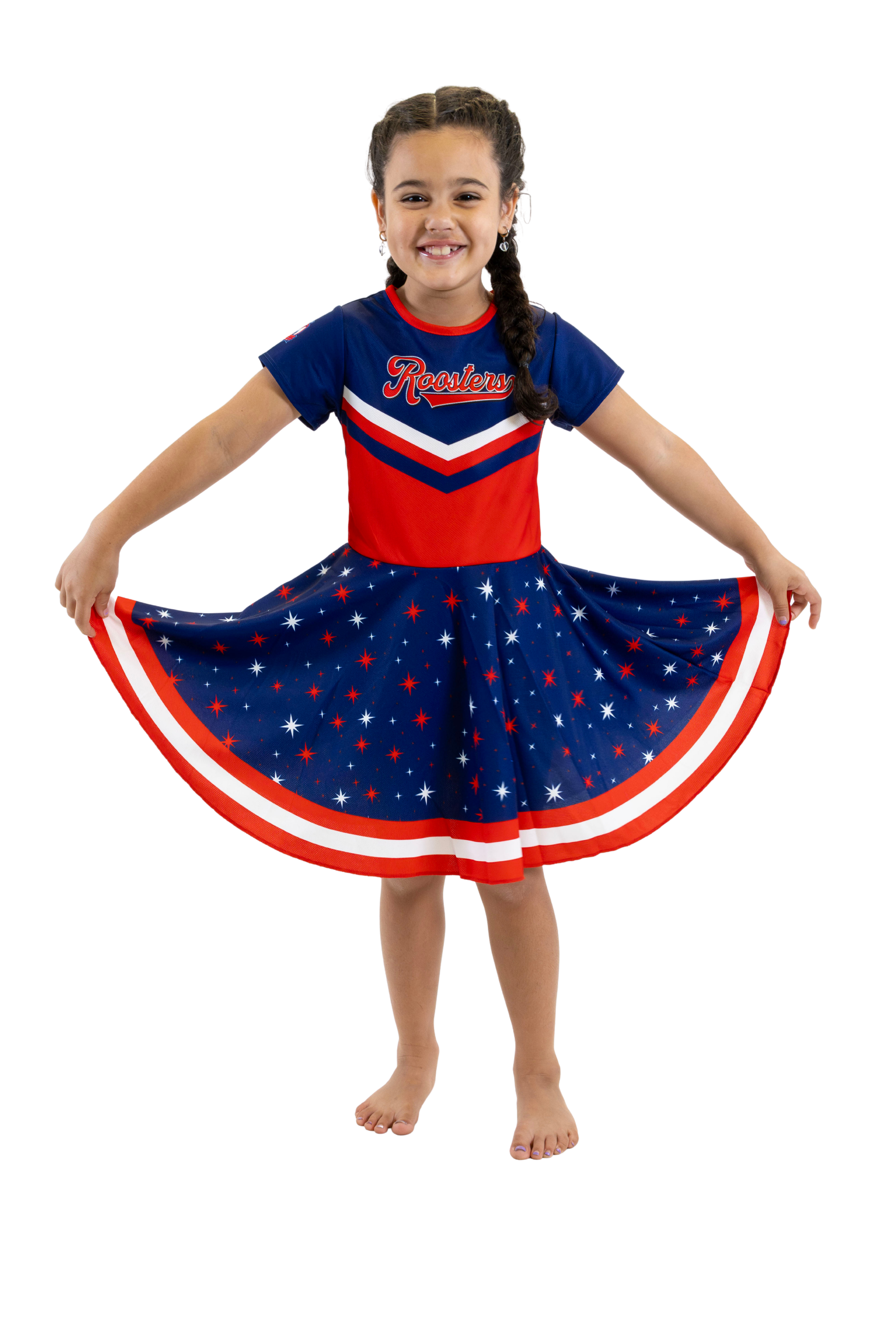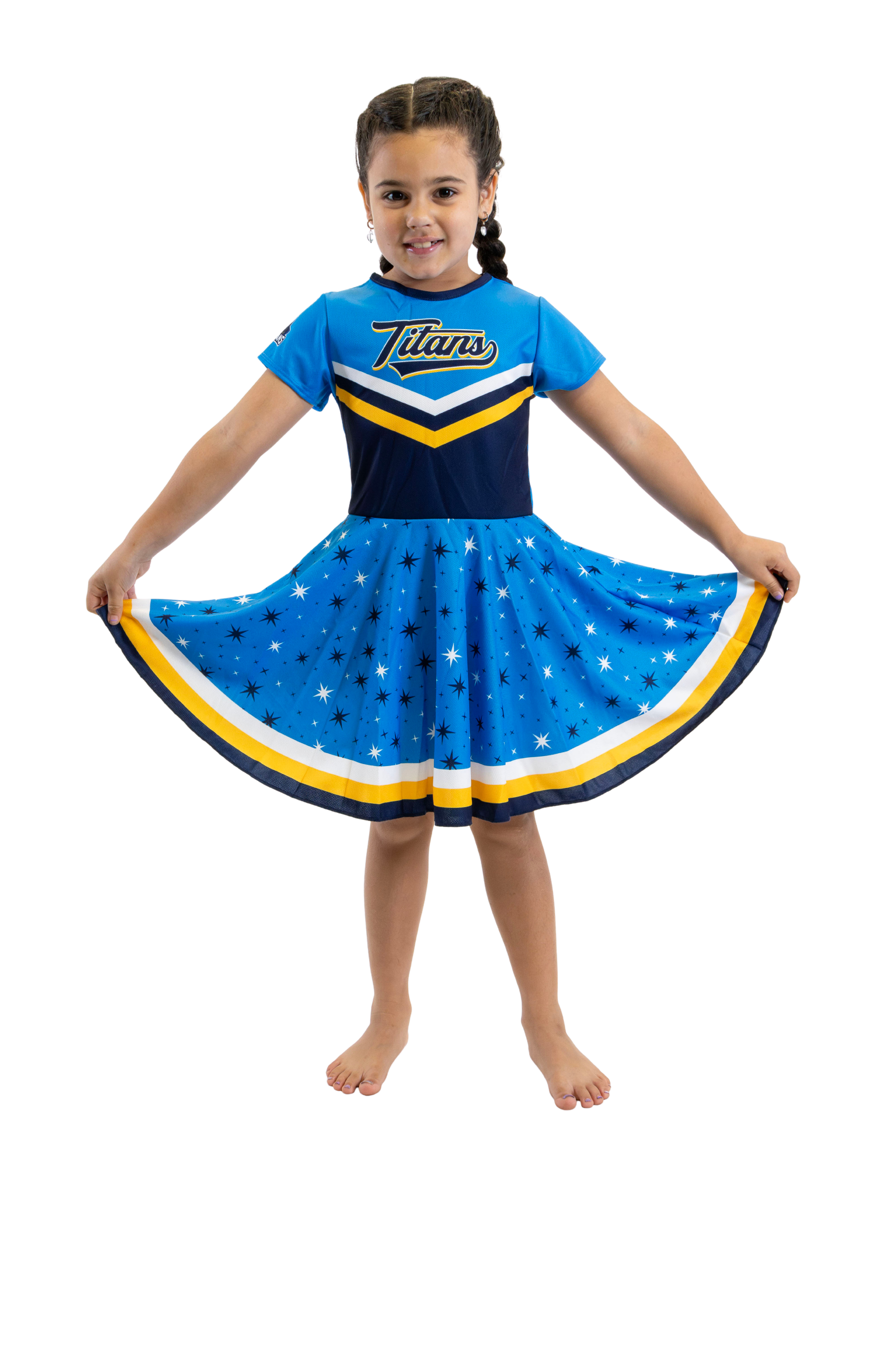 The Footysuit is a 100% cotton, all-in-one, baby jumpsuit that is designed to depict the complete outfit of your favourite hero. We use a mid-range skin-toned fabric on the leg to give the appearance of socks and shorts; it is a colour that looks good on babies with both darker and lighter skin.
